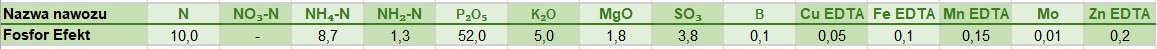 Nawóz krystaliczny z wysoką zawartością fosforu-52%, wzbogacony o dodatek mikroelementów w łatwo przyswajalnych, chelatowanych formach. Produkt przeznaczony do stosowania prewencyjnego oraz interwencyjnego we wczesnych fazach wzrostu roślin.