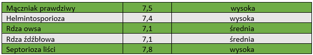 Odporność na choroby wg COBORU: